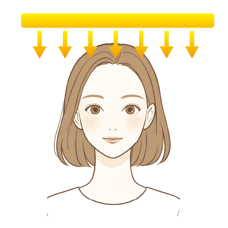 正面から光が当たると、どうしても光が目に入りまぶしくなりがちです。