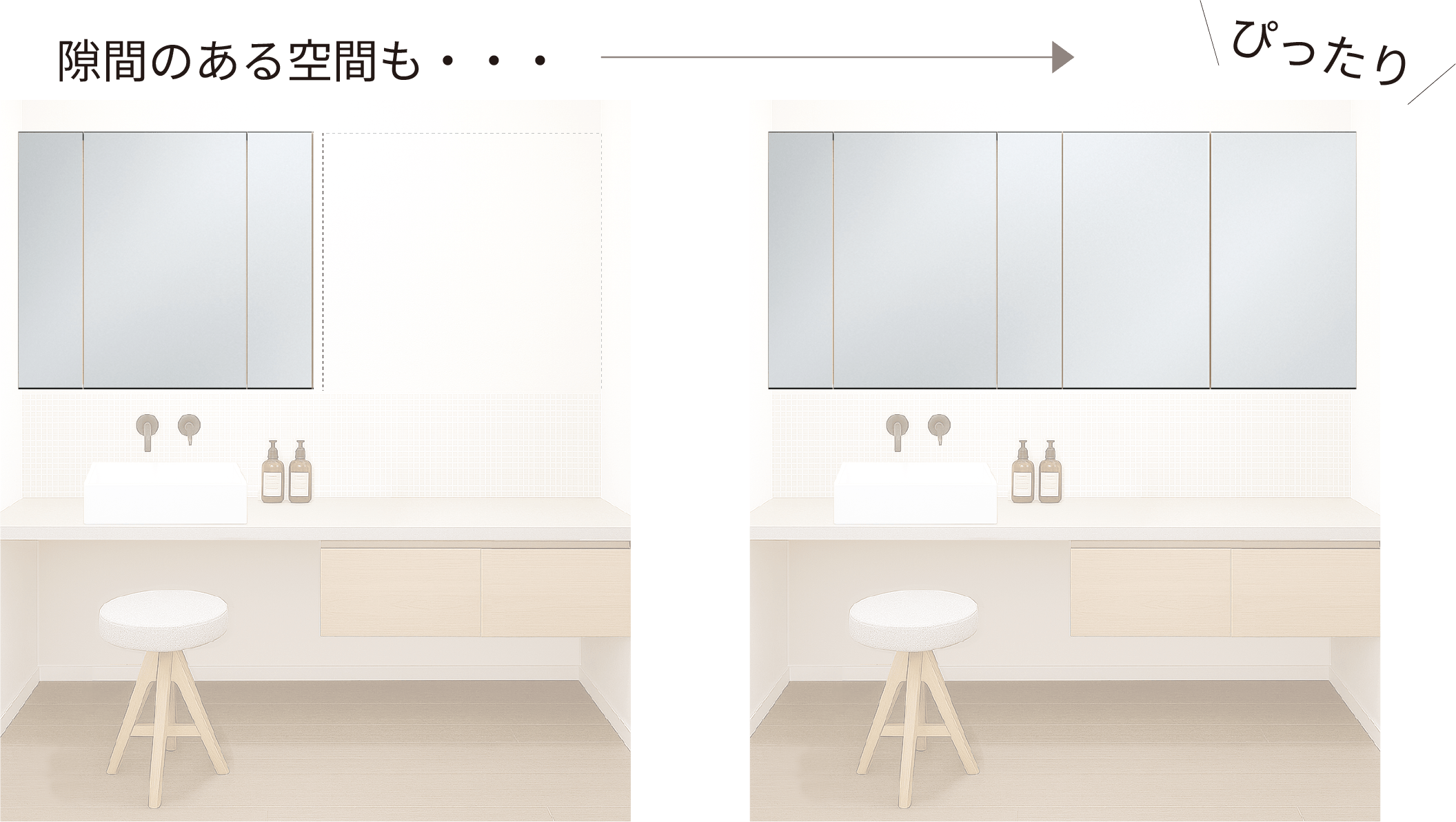 ぴったりサイズのミラーキャビネット