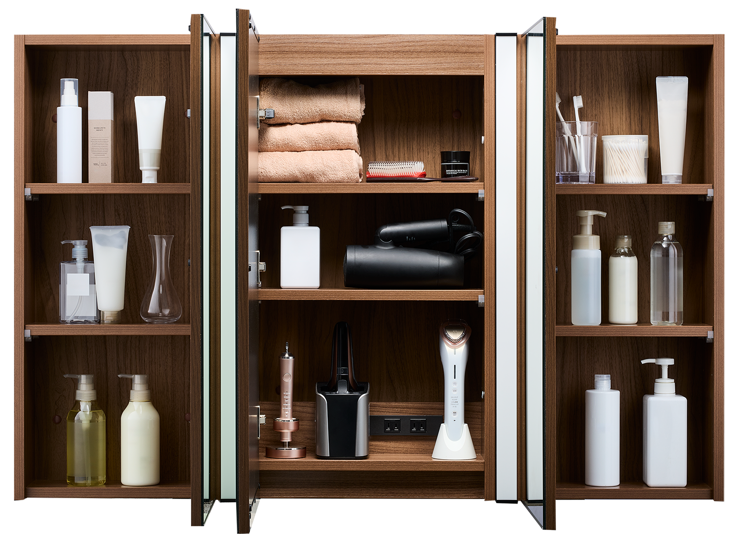 可動棚の高さを替えることで背の高い電動歯ブラシなども収納可能です